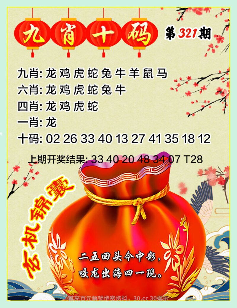 324期:(猴虎马龙)(猪蛇鸡)兔15准
